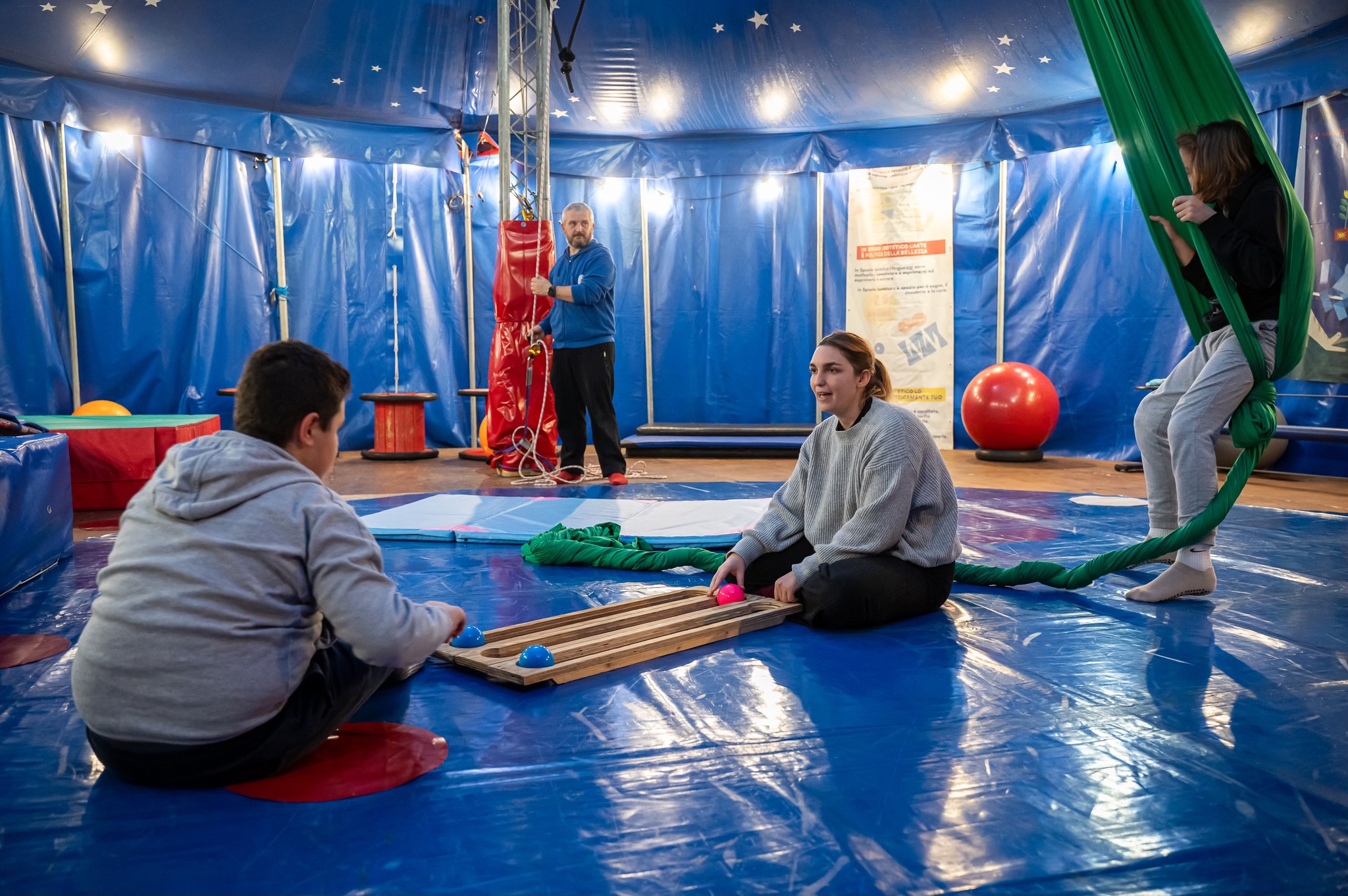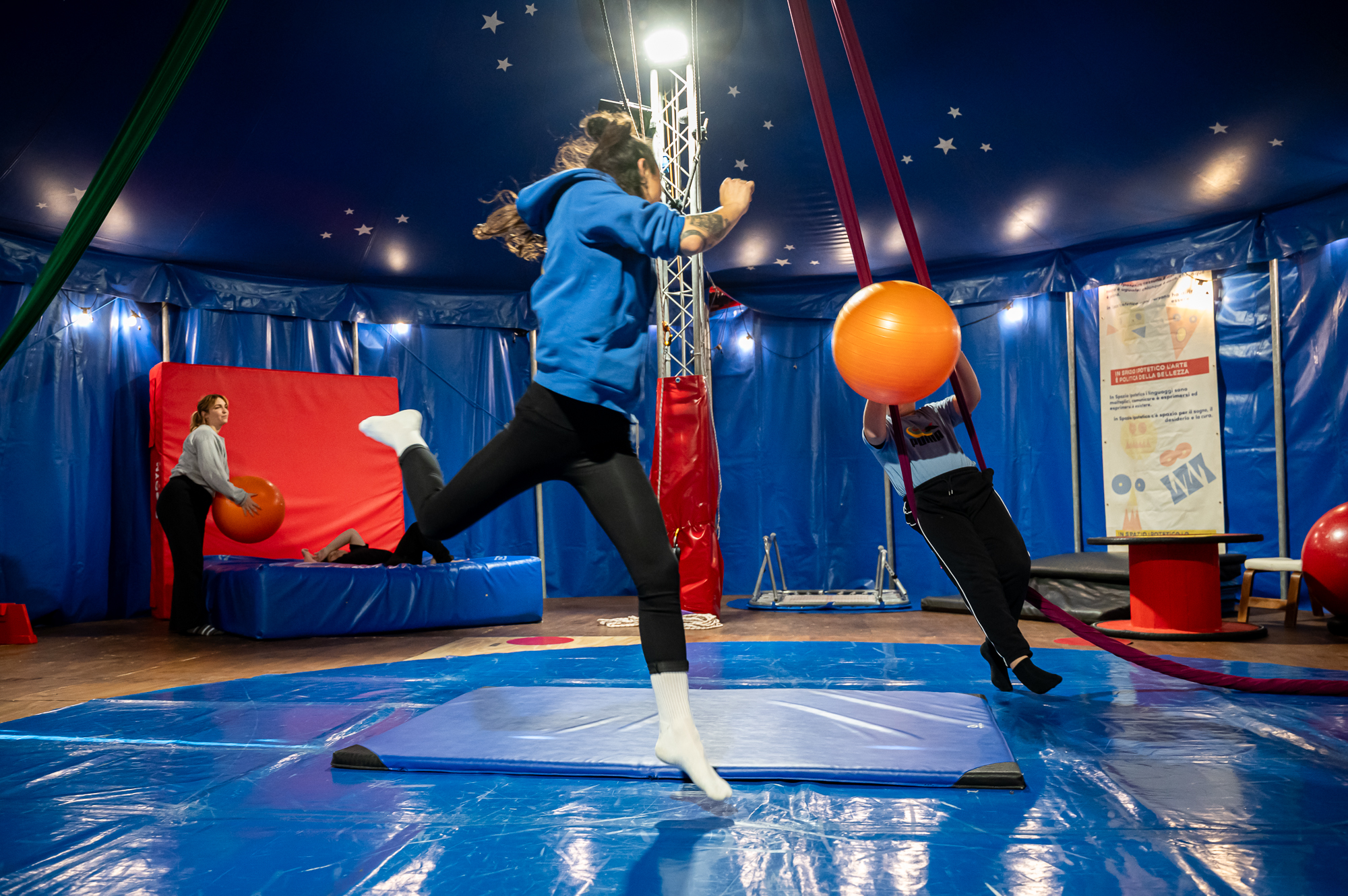 Le arti circensi, grazie alle molteplici tecniche e attrezzi che mettono a disposizione, rappresentano una notevole possibilità di sperimentazione e messa in gioco dell’espressività e dei talenti di ogni persona. Attraverso gli strumenti del circo possono essere perseguiti obiettivi di inclusione sociale e capacitazione. Riconoscendo le unicità di ciascun*, non si considera più l’individuo all’interno di una classe sociale, categoria o diagnosi, ma si va a scoprire la persona, creando la sensazione di appartenenza ad un gruppo dove ognuno anche attraverso gli altri può dare il meglio di sé.