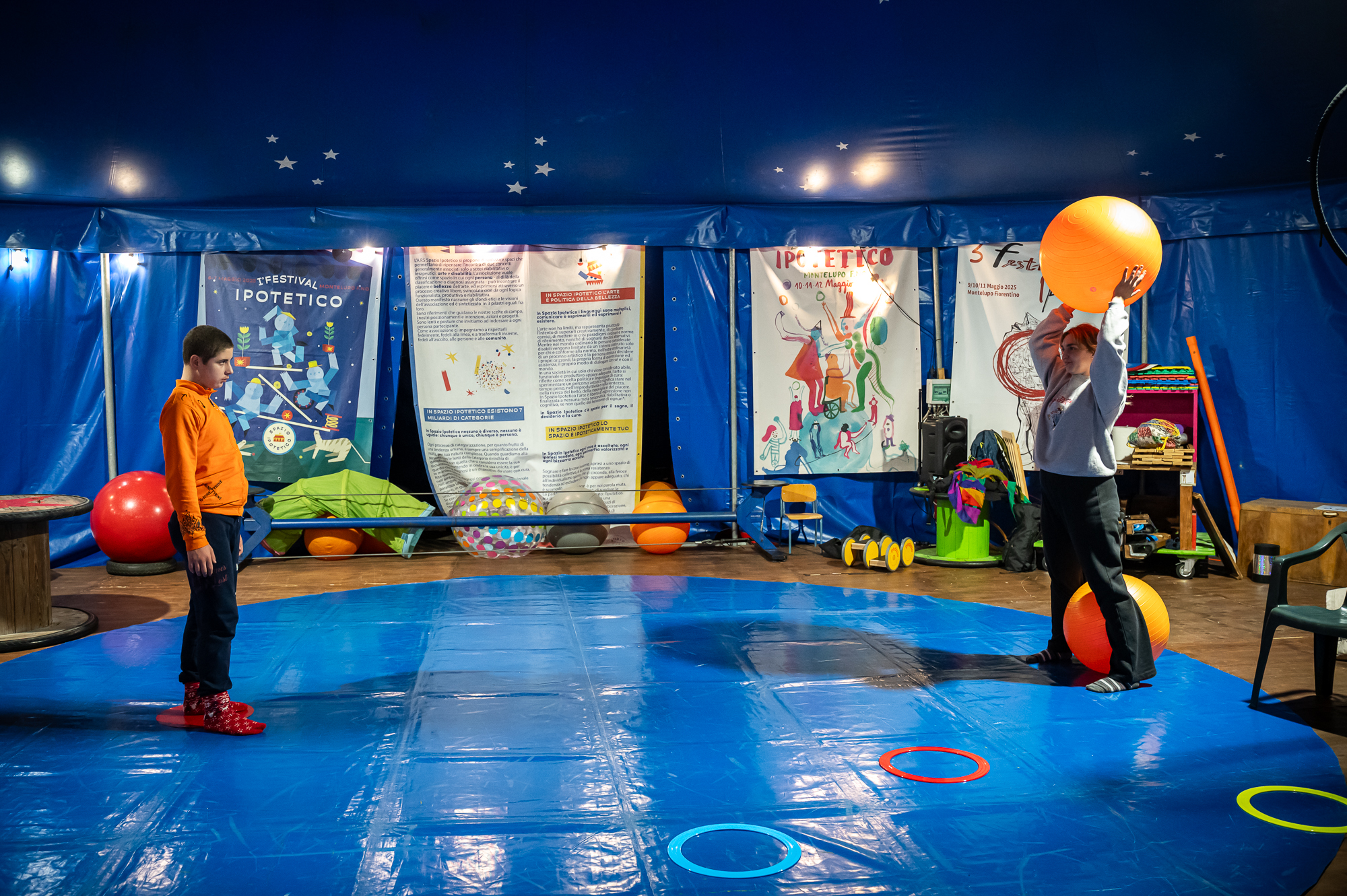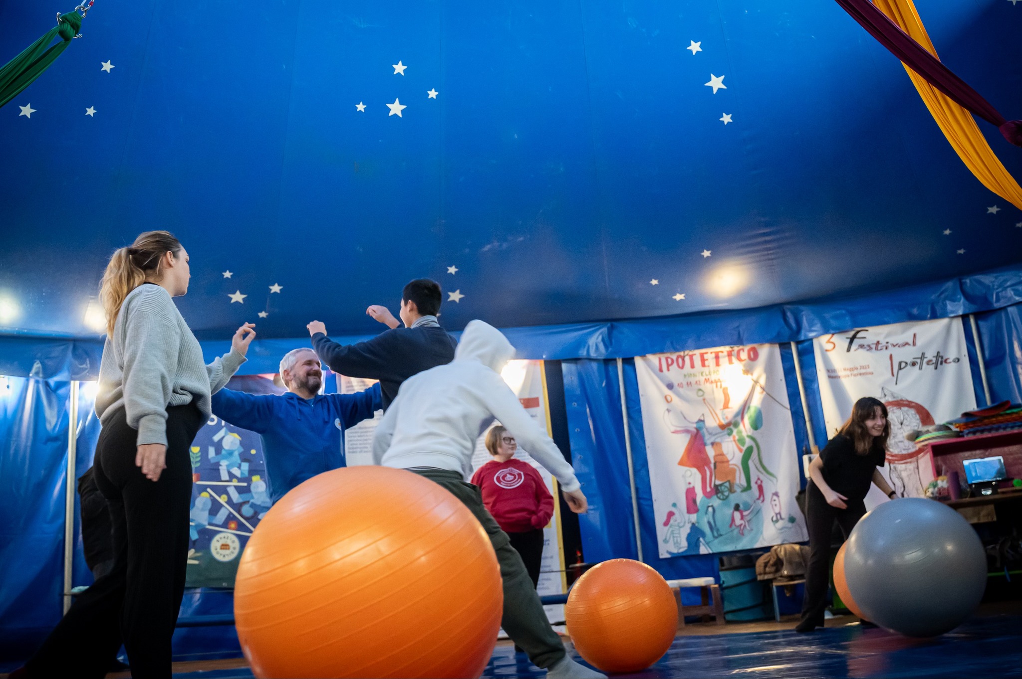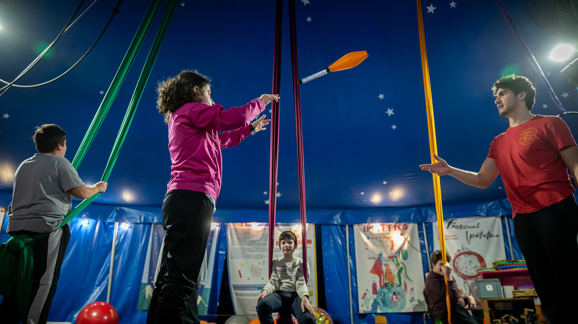 Il Circo-Ipotetico è un metodo di lavoro che utilizza le arti circensi come mezzo per contribuire al benessere, allo sviluppo personale e dell’autonomia, imparando a scoprirsi e a trovare nuove forme di espressione.