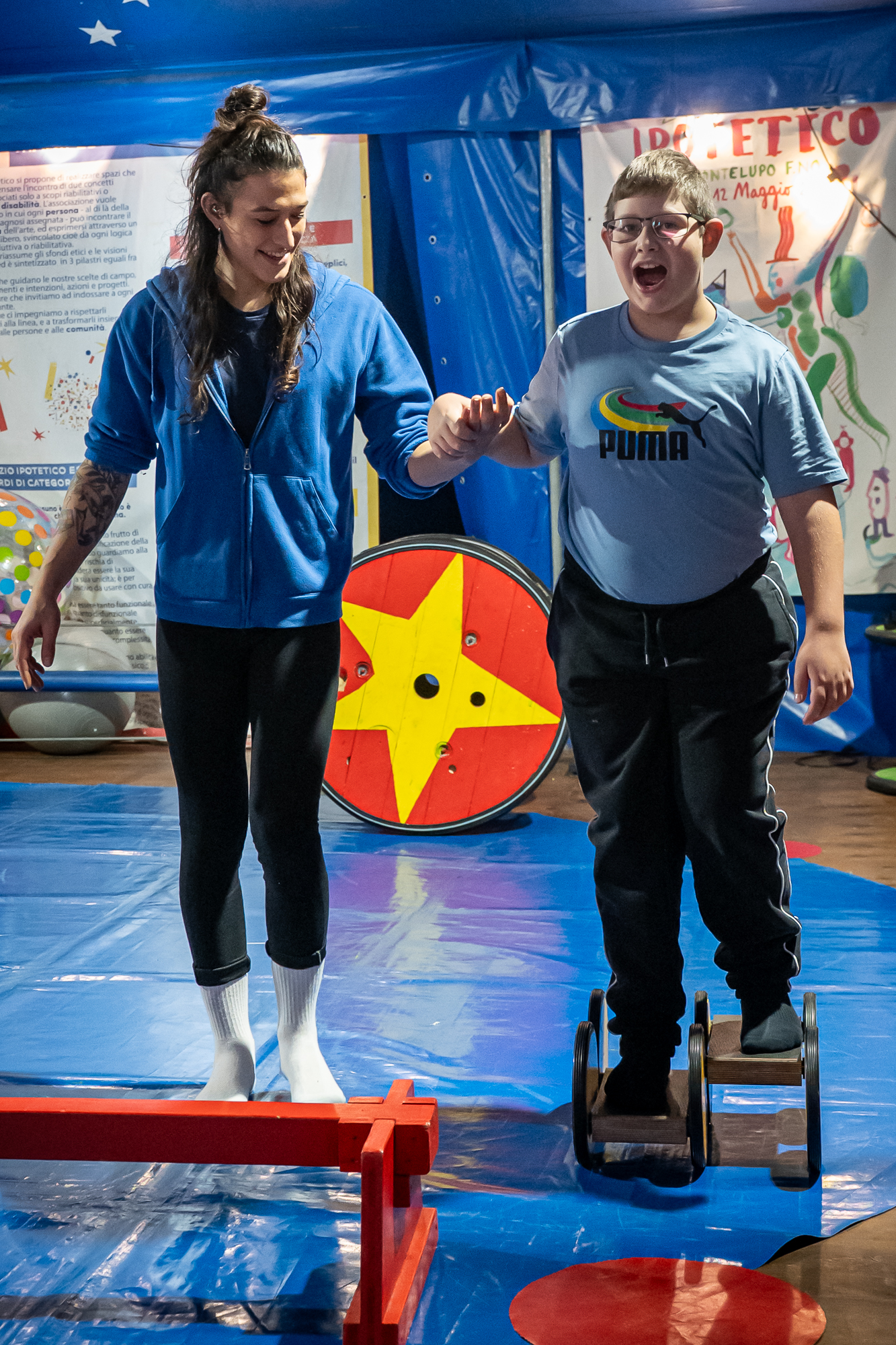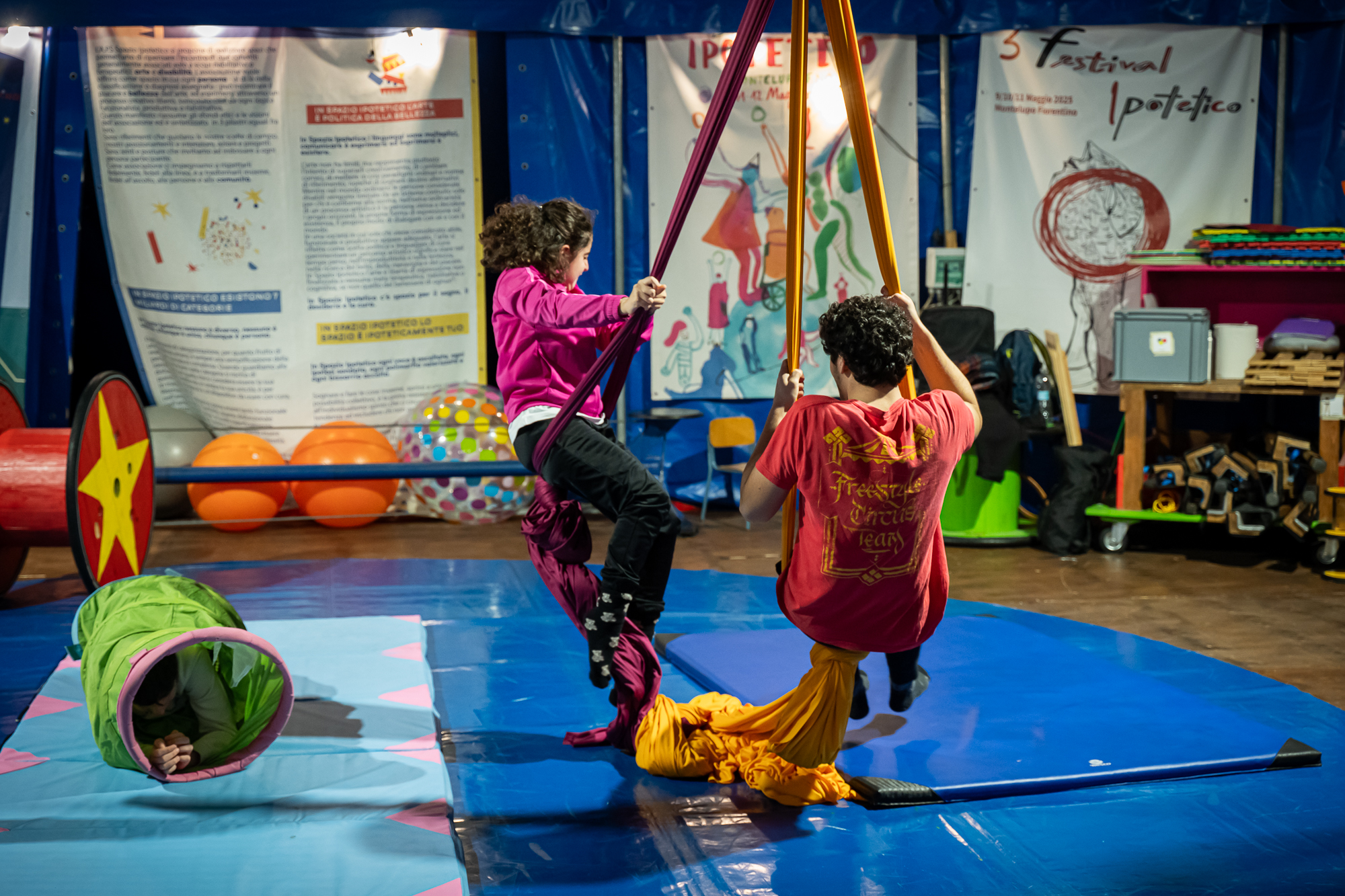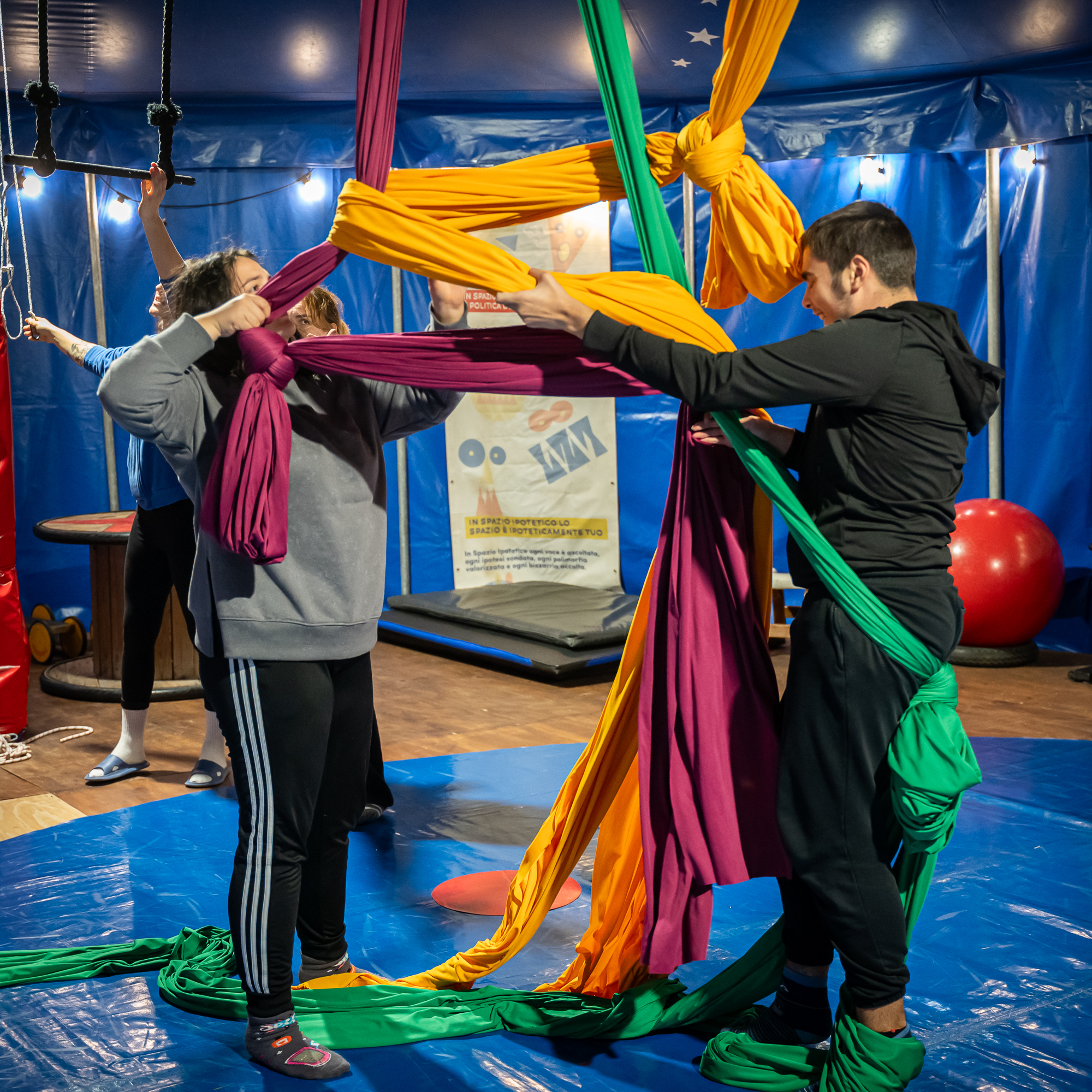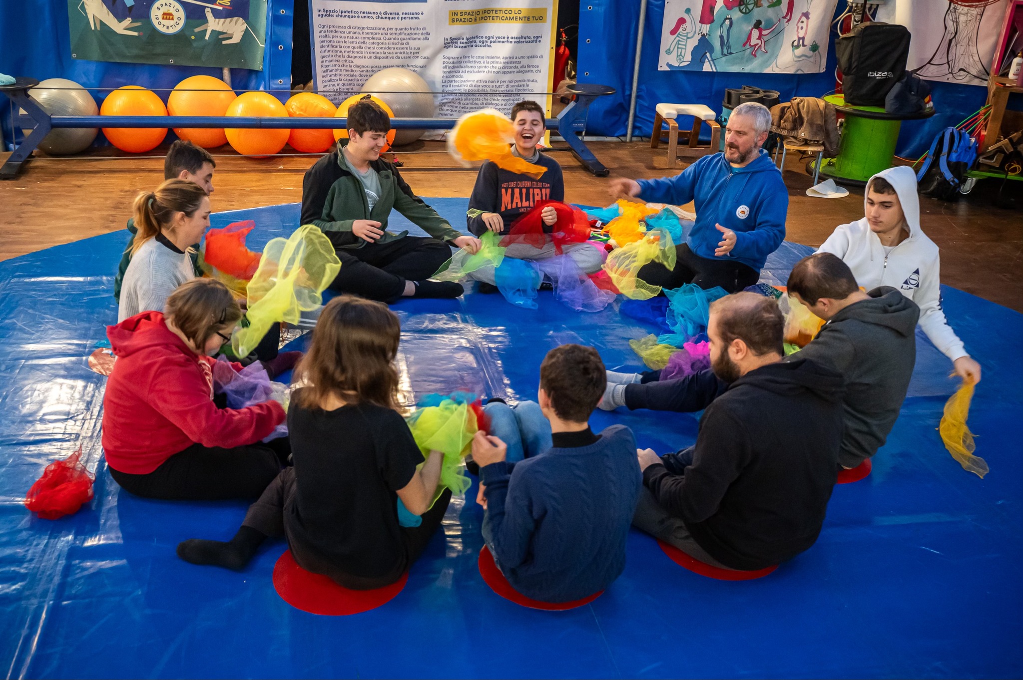 Il Circo-Ipotetico è un metodo di lavoro che utilizza le arti circensi come mezzo per contribuire al benessere, allo sviluppo personale e dell’autonomia, imparando a scoprirsi e a trovare nuove forme di espressione.